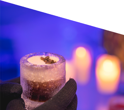 Our Scandinavian-inspired cocktail lounge, built from almost 30 tonnes of hand carved, glass-like ice architecture. We’ll keep you cosy in our luxe winter coats and quench your thirst with our carefully curated cocktail menu.
